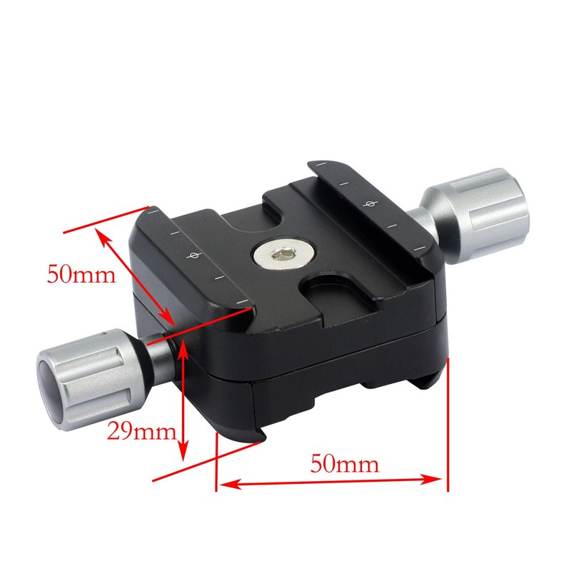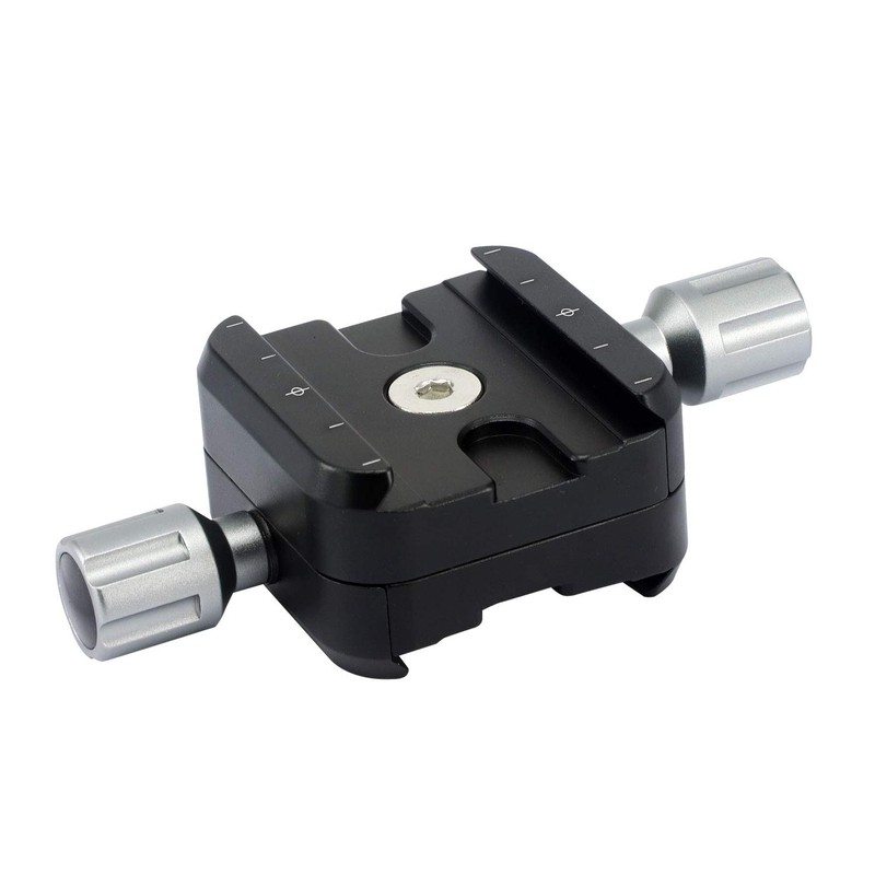 - The double screw knob clamps allow you to mount the Arca-Swiss standard plate at the top and bottom simultaneously, or mount the clamp to a multi-purpose rail and then mount an Arca-Swiss standard plate on the top, allowing you to move your setup along the rail without moving your tripod or camera support.