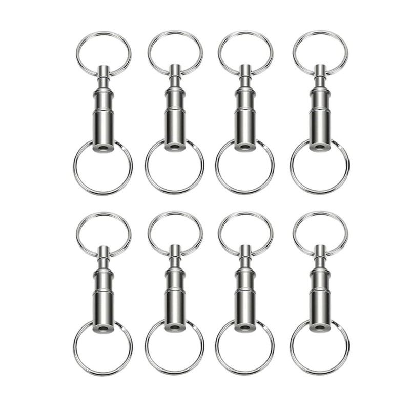 Quick Release Detachable Pull Apart Keychain Key Rings Clip Double Spring Split Snap Seperate Lock Holder Silver (8PCS)