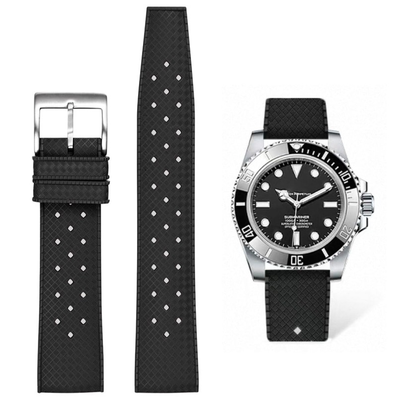 - 【Details】 Tropical style fluoro rubber diver watch band, also known as a fkm rubber perforated rally strap. The waterproof fluororubber watch band that is stylish enough for the office and durable enough for the gym, hiking, running, swimming, diving and much more. Ideal watch strap for any diver watch enthousiast.