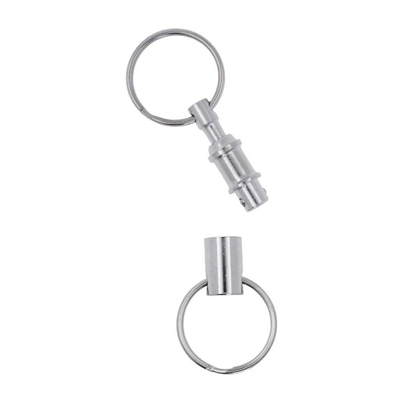 - Keychain connector with pull apart mechanism; Strong pin-lock engagement; Easy to open and put back together; Quicker release than coupler keychains; More reliable connection than magnetic key rings