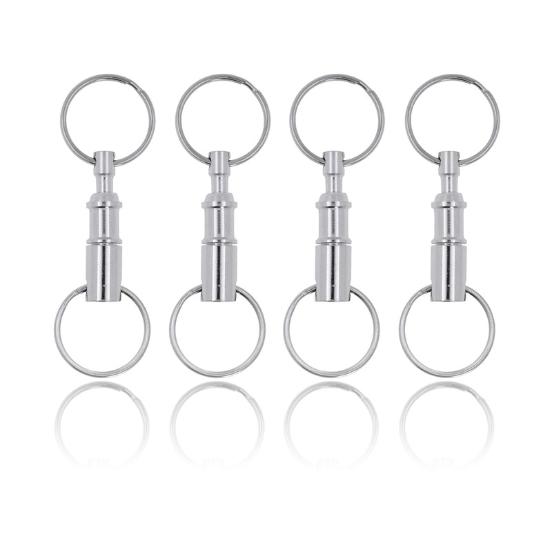 - Quick release detachable key ring; Durable and sturdy; No sharp edges; Sleek silver design for men and women; Manufactured for repeated use