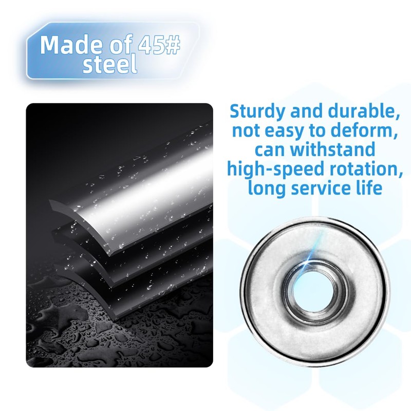 - Material: 45# steel: sturdy and durable, not easily deformed, can withstand high speed rotation and has a long service life