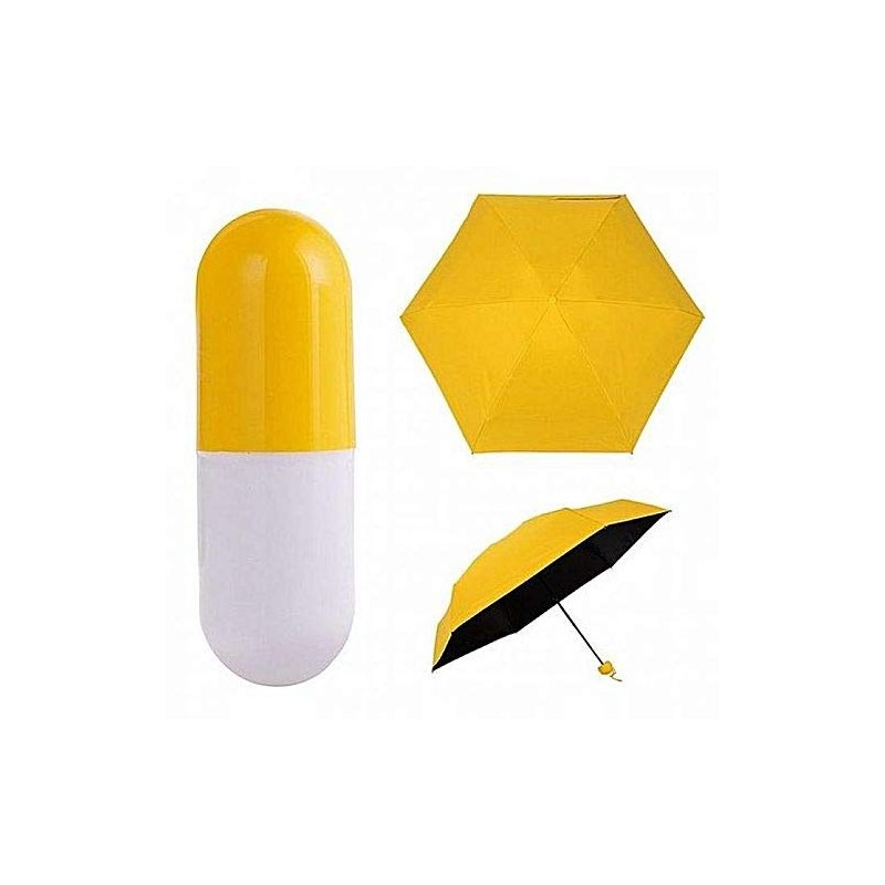 Quick4You Umbrella with Capsule Case Mini Folding Travel Capsule Umbrella Compact Fast Drying (Yellow)