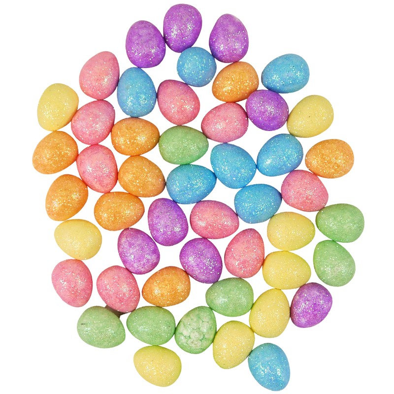 Quickdraw 50 Mini Colourful Glitter Foam Easter Eggs Decorating Bonnets Craft Egg Hunt