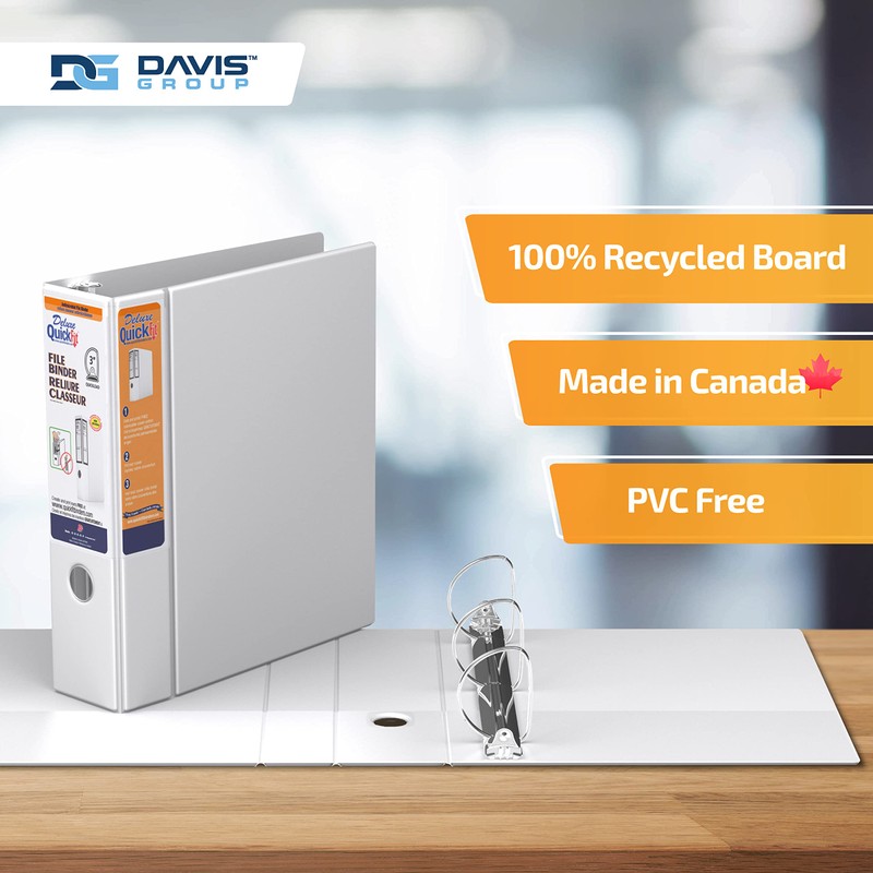 QUICKFIT Deluxe Heavy Duty File Binder - 3" Binder Capacity - 550 Sheet Capacity - D-Ring Fastener - 2 Internal Pocket(s) - Vinyl - White - Recycled - 1 Each, 28050