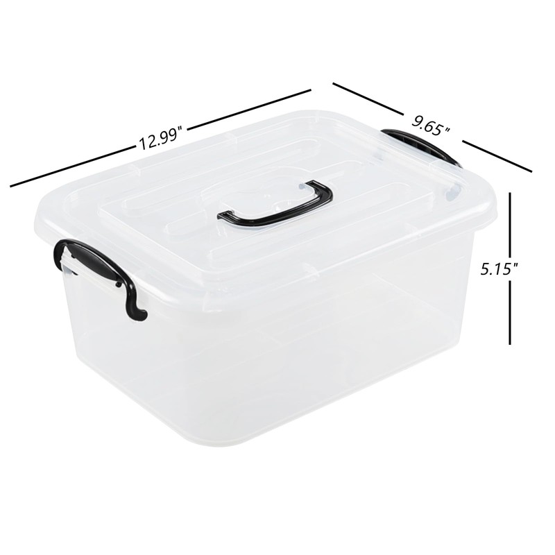- Designed with protable top handle, the box can be carried and moved easily and conveniently. Both sides latch clips enable the box to be locked with the lid tightly, which provide a safe storage for your things