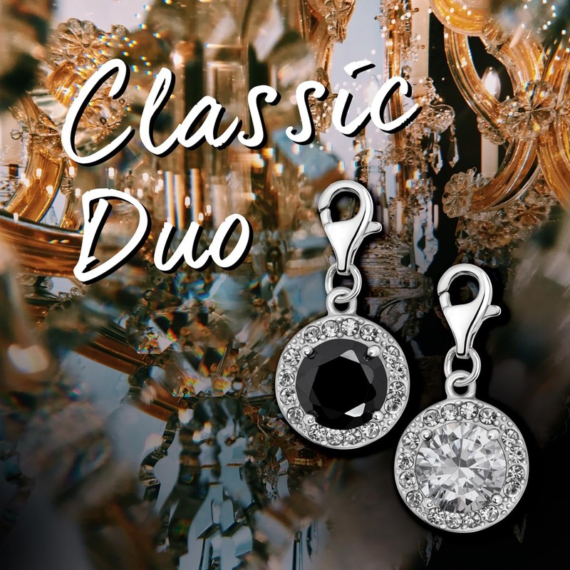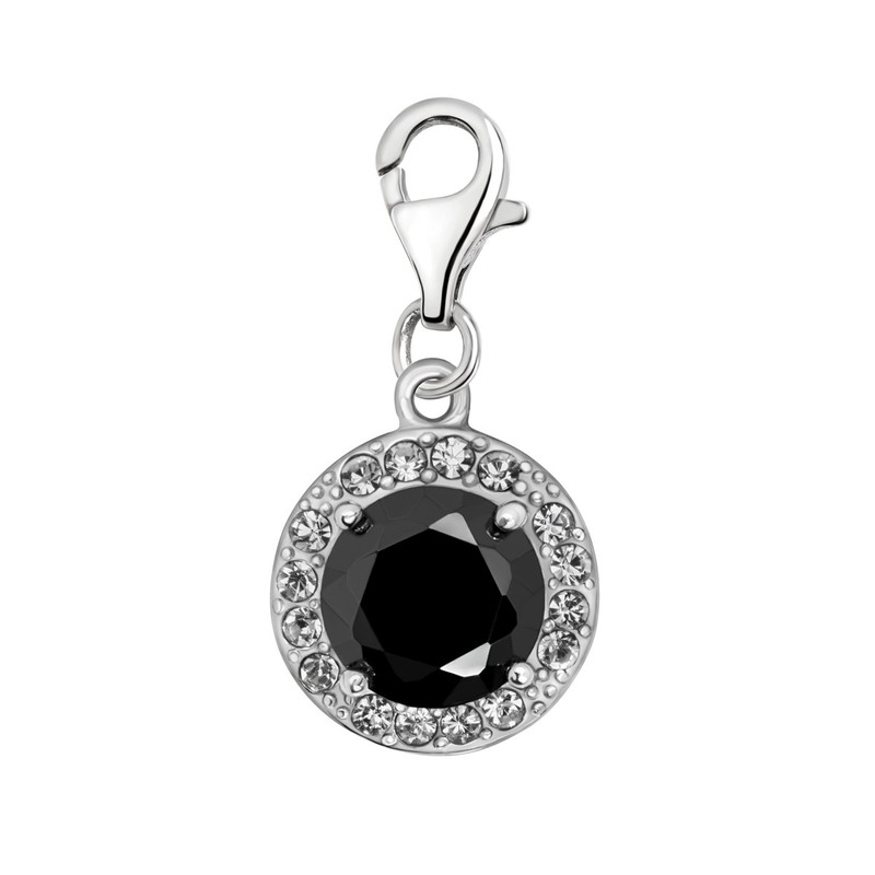 Quiges Charms Silver Plated Black Cubic Zirconia Clip on Charm Lobster Clasp for Thomas Sabo style bracelets
