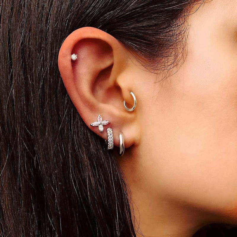 Quiges Earrings 925 Silver Stud Earrings Set in Flower Shape with Transparent Zirconia, Crystal, Cubic Zirconia