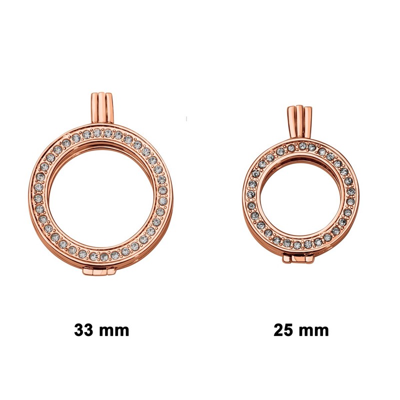 Quiges Rose Gold Plated Copper Interchangeable Coin Holder Pendant 33mm Large with Crystal Ring