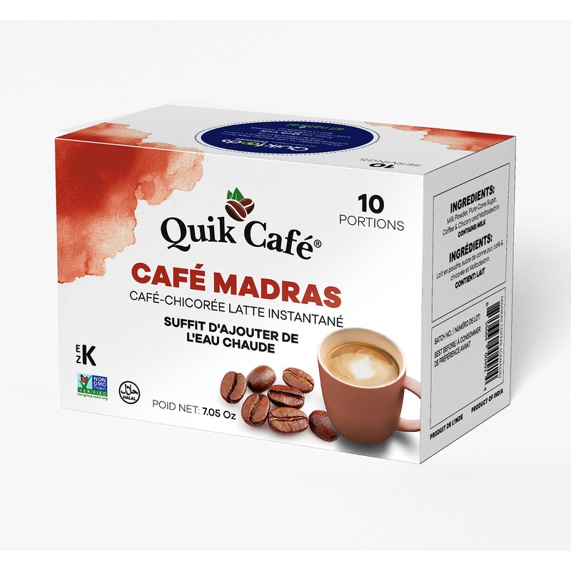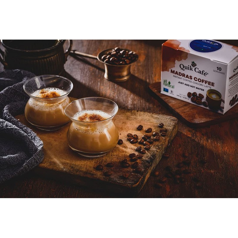 Quik Cafe Madras Coffee Latte - 10 Count Single Box - All Natural & Preservative Free Authentic Instant Coffee
