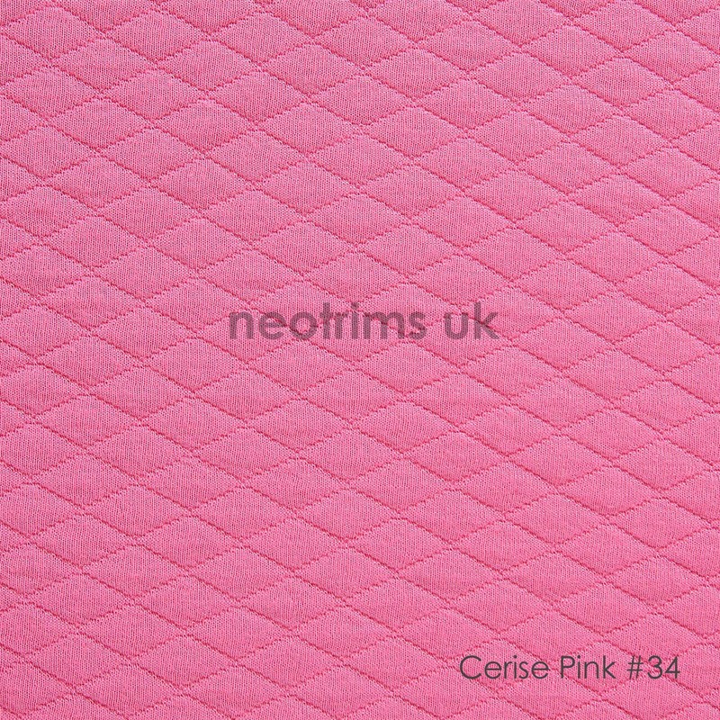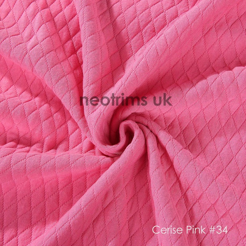 Quilted Knit Jersey Fabric Double Layer Knitted,Harlequin Diamond Shape Stitch Pattern. Outerwear,Babywear or Insulate as Lining,Soft Luxurious Handle,Neotrims UK. Cerise Pink #34, 1 Metre