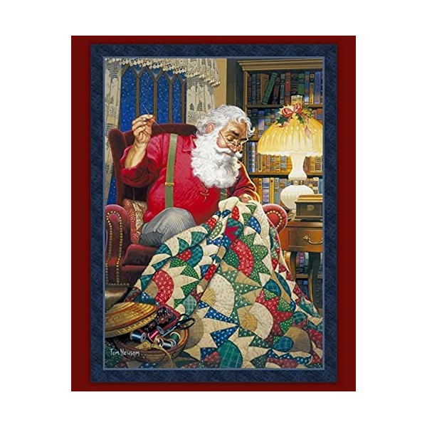Quilting Santa Digital Quilt Panel with Backing Multi Color