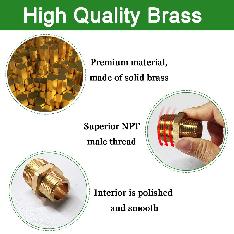 - ⚙️HIGH QUALITY MATERIAL: Premium solid brass nipple, thicker and stronger, durable, threads are deep and accurate, high corrosion resistance, low magnetic permeability and high temperature ductility.