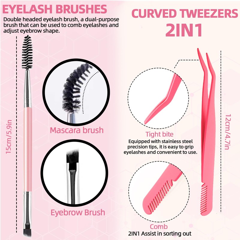 - False Eyelashes Extension Tool: Our eyelash brush is soft and durable, with a dual head design that can be used to curl and comb eyelashes, as well as as as as an eyebrow brush. The tweezers are made of high quality and durable stainless steel, which can precisely clamp and easily grip eyelashes. A disposable mini applicator can apply edges and solve detail problems. This kit is a suitable eyelash extension kit for beginners and also the best choice for eyelash enthusiasts.
