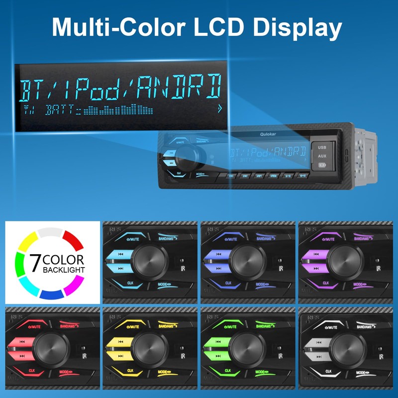 Qulokar Single DIN Multimedia Car Stereo Radio,7 Character LCD,Bluetooth with Hands Free Calling & Music Streaming,USB Playback & AUX Input,FM Radio Receiver Wireless Remote Control