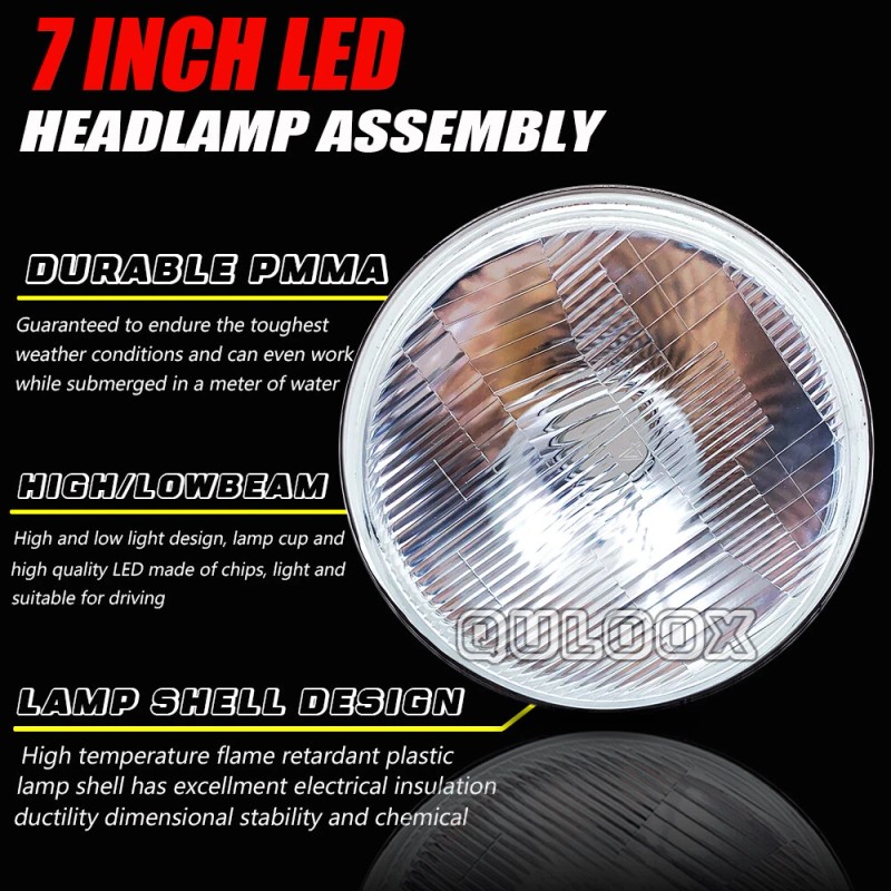 QULOOX 7 Inch Round LED Headlight DRL For Ford Thunderbird 1955-1958 Deluxe 1939-1951