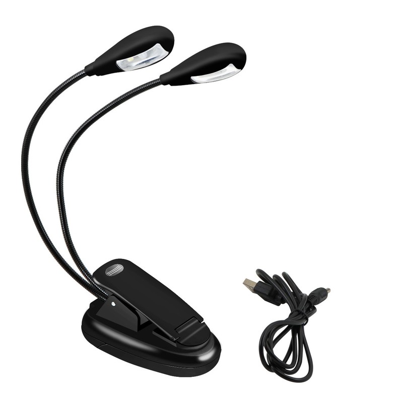QUMOX LED Book Light, Portable Music Stand Lights, Dual Head, 4-Level Brightness, USB Cord Included, Daylight White, Clip Light, Task Lighting