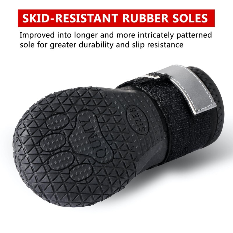- RUGGED: Tough anti-slip sole of dog boots provides stability and traction, protection from sharp thorns and hot pavement.