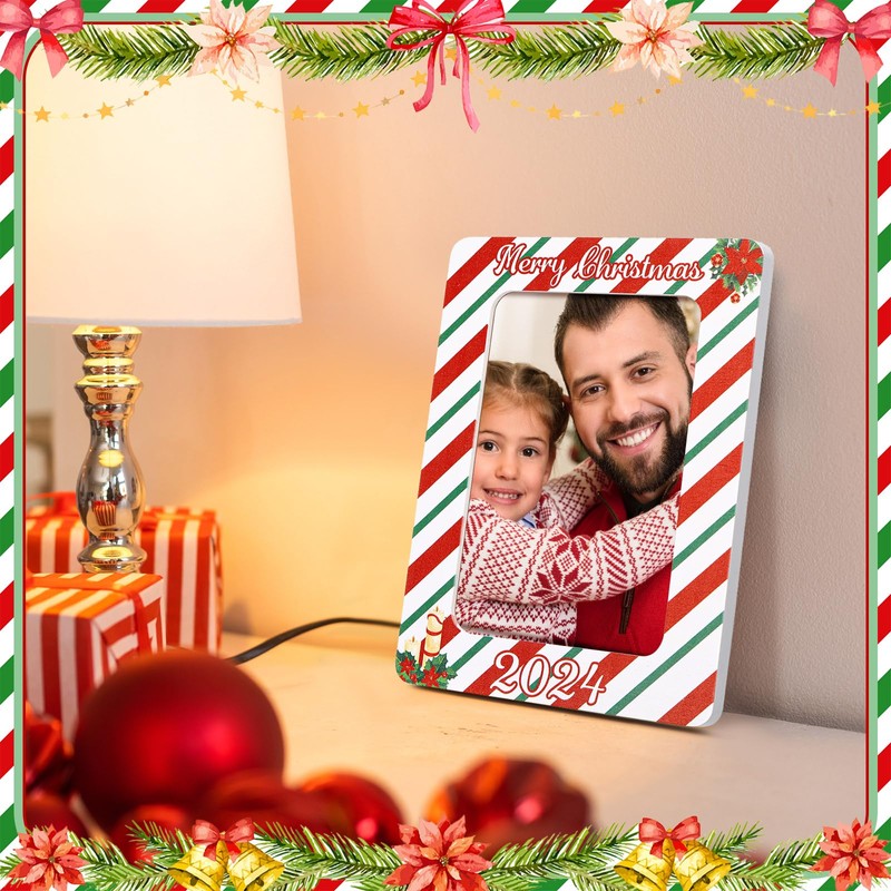 - Suitable Size: our classic 2024 Christmas photo frame's size is about 20 x 15 cm/7.8 x 5.9 inch, and suitable for 10 x 15 cm/4 x 6 inch photos, will show your precious memories, and the photo frame will not take up too much space. Which can be placed in the living room, bedroom, porch, bookshelf, dressing table and other places