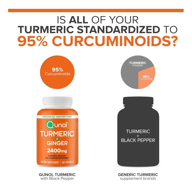 Qunol Turmeric Curcumin with Black Pepper & Ginger, Qunol 2400mg Extract...