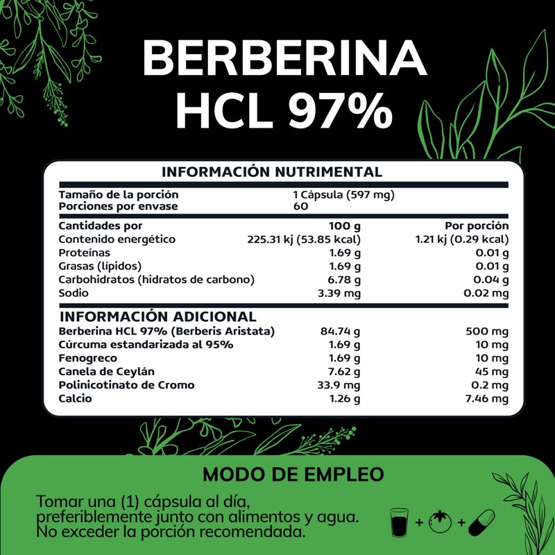 - ✨ ULTRA PREMIUM - Beberina HCL 97% (Berberis Aristata) de máxima pureza fortalecido con Canela de Ceylán, Fenogreco y Cúrcuma Estandarizada al 95%