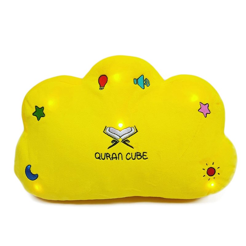 Qur’an Cube® Quran Pillow - Dua Kalima Surah - Best Gift For Kids & Family Learning Quran - Full Quran Dusa From Early Ade - Durood Sharif, Kalima Dua English (Yellow)