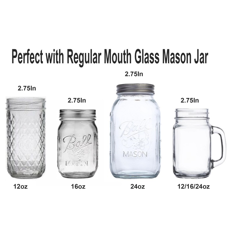 - Set of 2 sets.Golden.No glass jar.Apply to all 2.75 Inch standard mason jar.Physically assembled, no glue.The product comes with two dust-proof plastic covers, one for normal use and one for backup. Dustproof, clean and hygienic