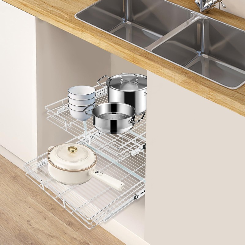 - Convenient Life: Featuring a retractable ball bearing system, the two shelves slide out smoothly and completely and can each be pulled out individually, allowing you to access your items with ease. It can also maximize your cabinet space, utilizing valuable kitchen space for you