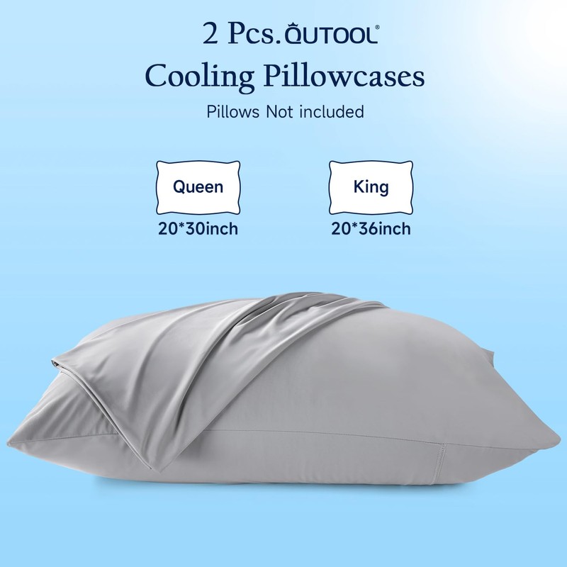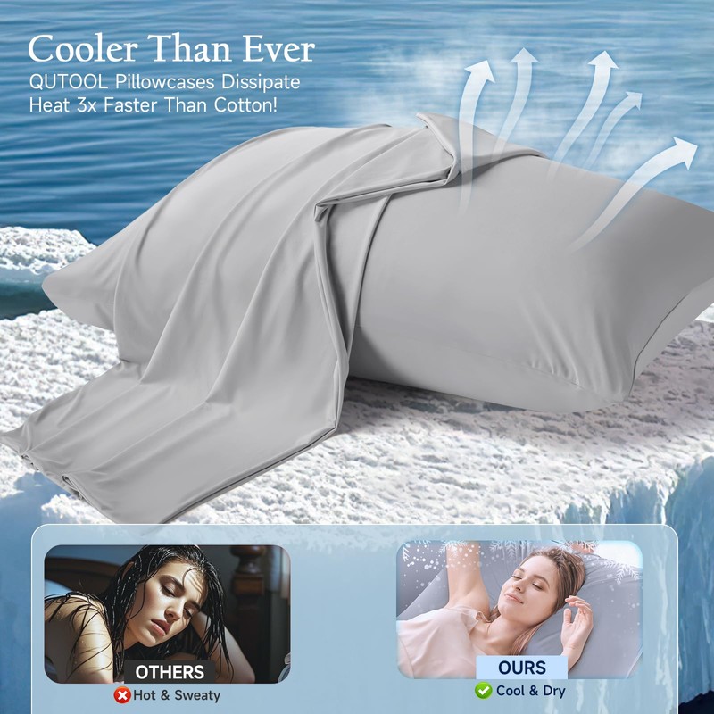 - COOLING DESIGNUsing advanced cooling tech, QUTOOL cooling pillowcases feature fibers (Q-Max > 0.4) that remove moisture and regulate temp. They provide a refreshing feel, keeping you cool at night. Perfect for hot sleepers or warmer climates, they're cool, silky, and 5x more breathable & absorbent than cotton. Ensures a dry, restful night.