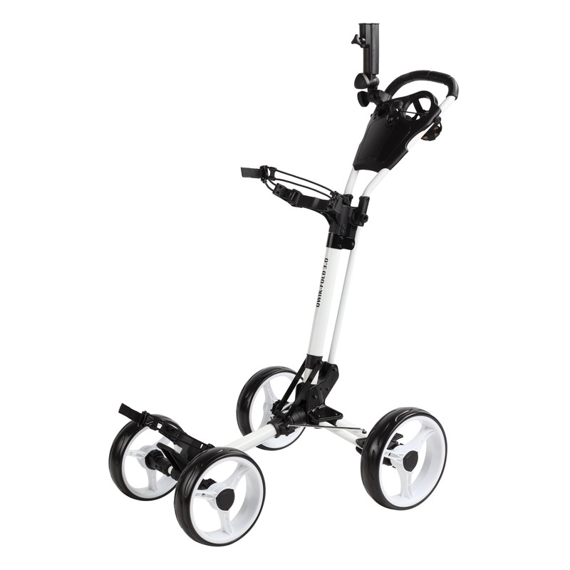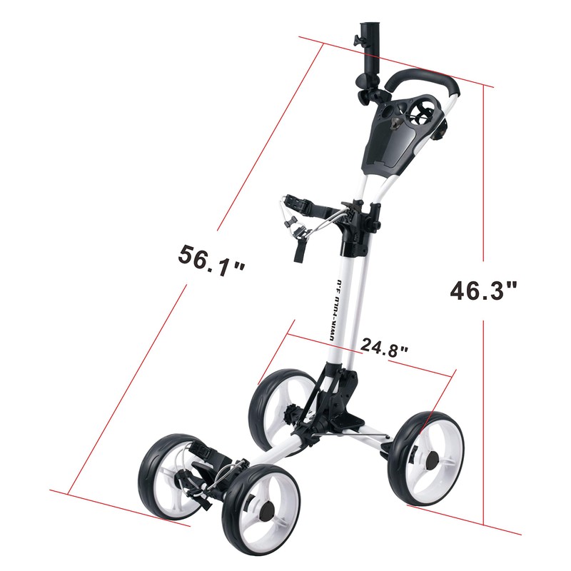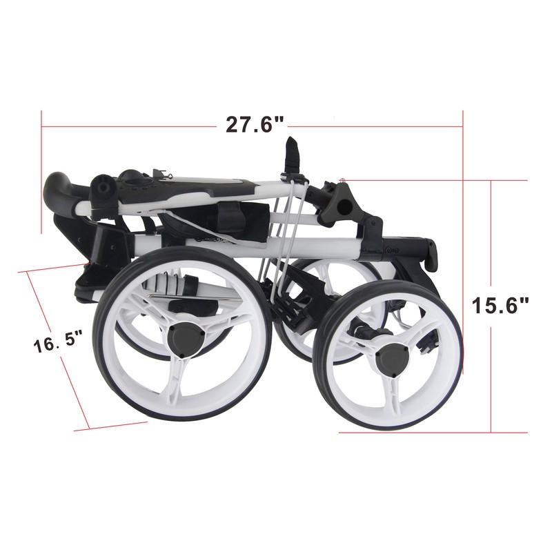 Qwik-Fold Folding Golf Push Cart 4 Wheel with Foot Brake – 1-Second Open & Close Golf Bag Cart, Adjustable Handle, Ball-Bearing Wheels, Lightweight Aluminum Frame, Umbrella Holder Included