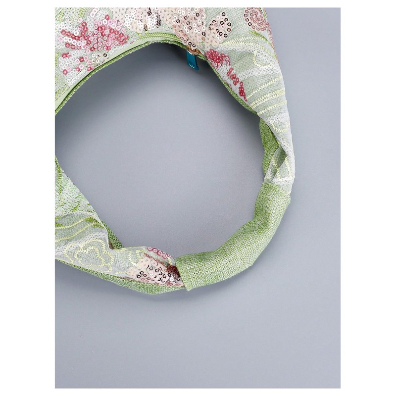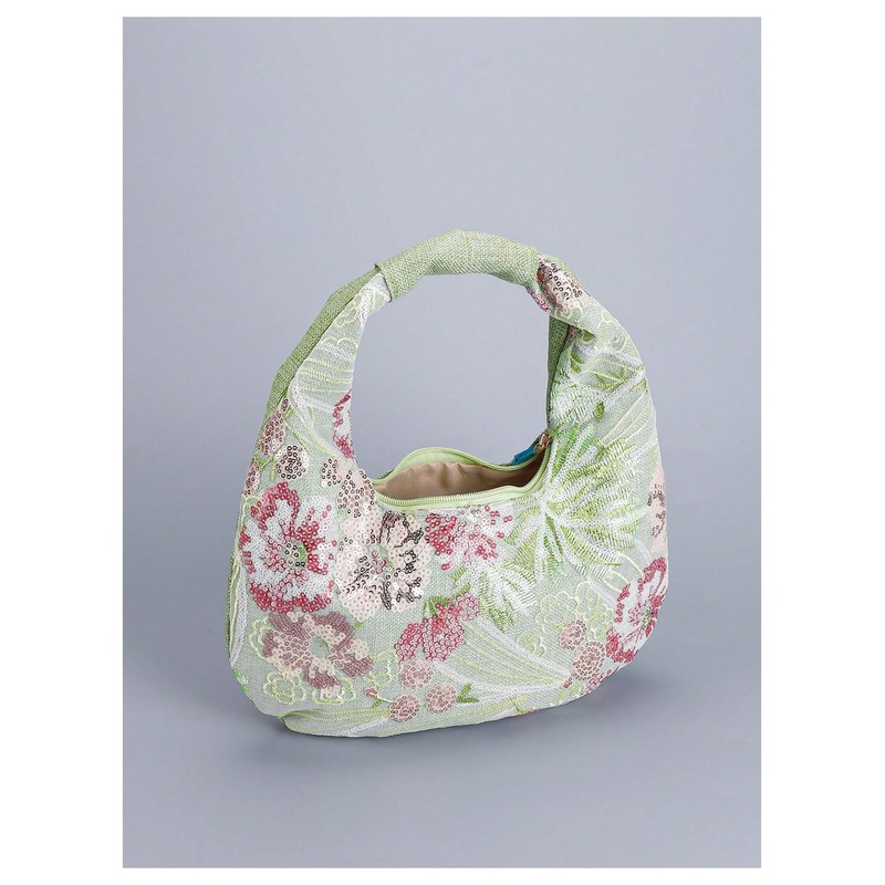 QWINEE Women's Floral Embroidered Crescent Clutch Handbag Sequin Y2k Zipper Top Handle Evening Bag for Wedding Party, Light Green, One Size