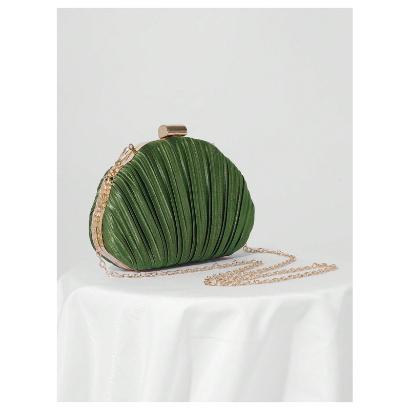 QWINEE Women's Shell Shaped Clutch Purse Ruched Mini Crossbody Bag Elegant Evening Handbag with Chain Strap, Green, One Size