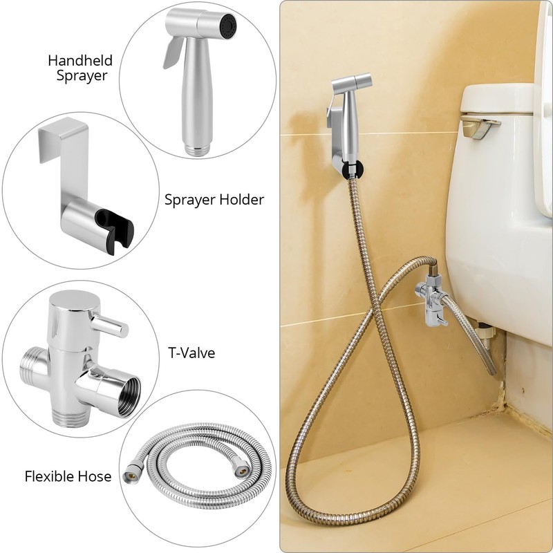 QWORK® Hand Bidet Shower Set for Toilet, Bidet Hand Shower Set Made of Stainless Steel SUS304 with Leak-Proof Design, G1/2 Inch