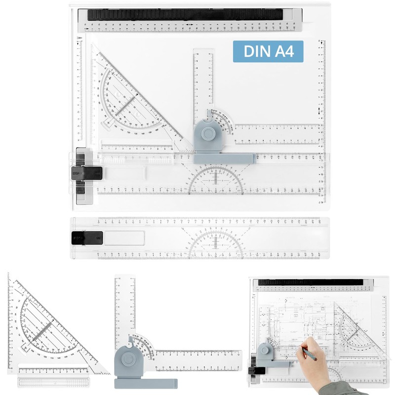 QWORK® Multifunctional Drawing Board Set, DIN A4 Drawing Board with Adjustable Measuring and Precision Tools