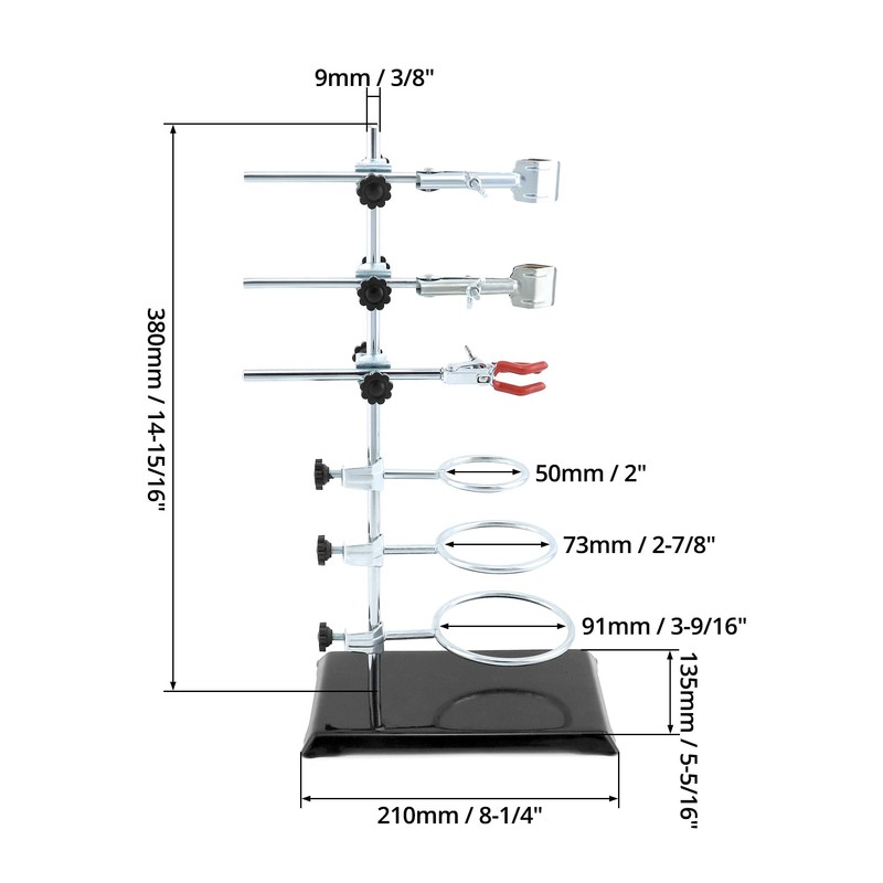 • Adjustable Clips and Hoops: Equipped with three adjustable clips with a maximum opening of 2.4"/3.5" and three round hoops for secure attachment of items during experiments.