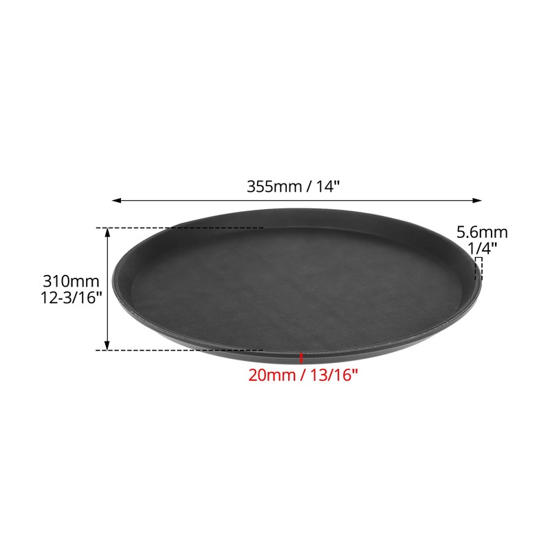 QWORK Restaurant Grade 14-Inch Round Non-Slip Tray, 4 Pack, Black Plastic with Rubber Liner