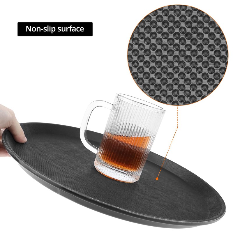 - Non-Skid Surface: Equipped with a rubbery, absorbent, non-skid finish, they secure transport of dishes and glassware without spills.