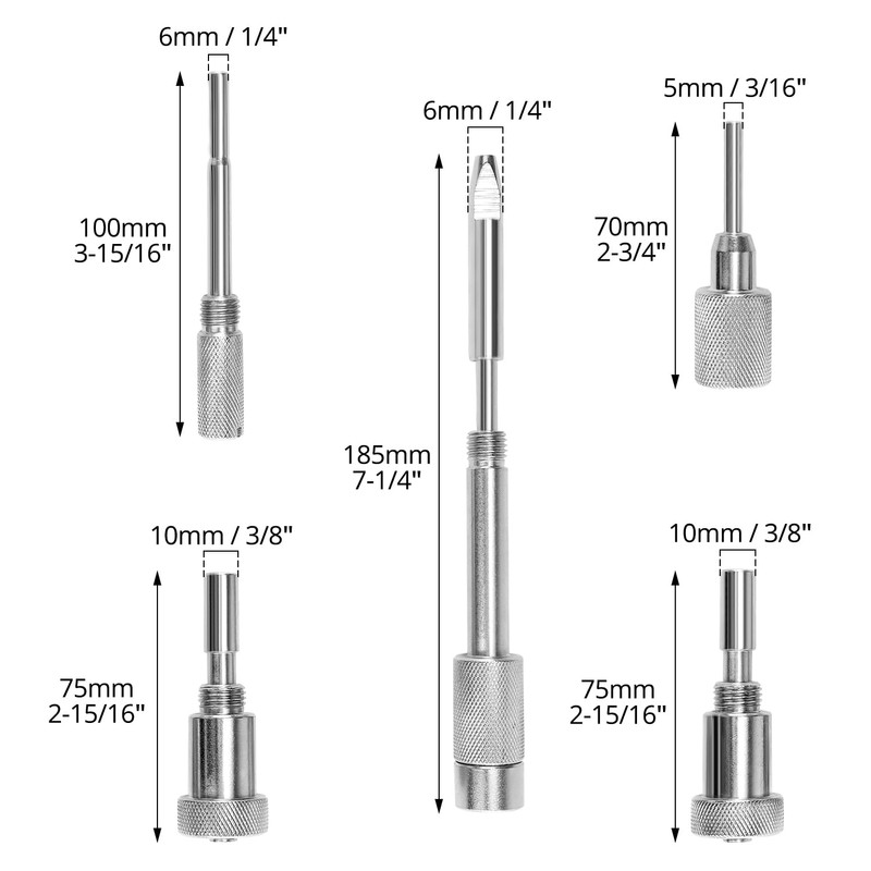 • PACKAGE LIST The kit consists of two camshaft fixing mandrels, a crankshaft fixing mandrel, a camshaft gear alignment pin, and a crankshaft fixing mandrel for precise engine tuning and maintenance.