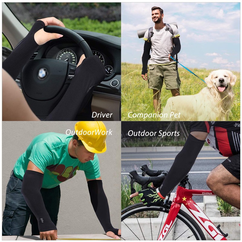 - You will receive 5 pairs black arm sleeves. Cooling touch feeling, skin friendly fabric, absorbent and UV protective sleeves will provide you an icy wearing experience. Do not worry about blistering summer days, just go out to have fun with this cooling sleeves.