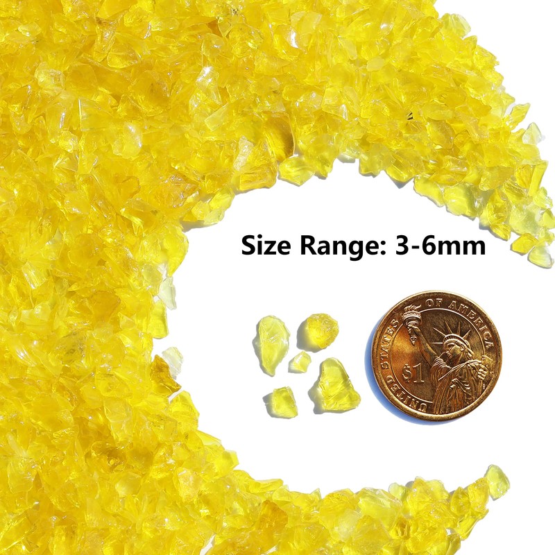 QYGL Crushed Glass for Resin Art, DIY Crafts, and Home Decor - 0.9LB Yellow Broken Glass Pieces 3-6mm, for Vase Fillers, Tabletop Fire Pit, and Aquarium Rocks