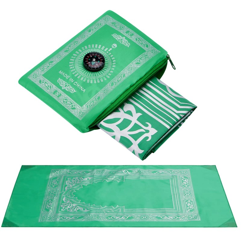 - FOLDABLE PRAYER MAT WITH COMPASS The Islamic prayer mat has a compass on the storage bag, which helps you find the prayer direction. With a compass: easy prayer to find direction. Everywhere you go, pray anywhere.
