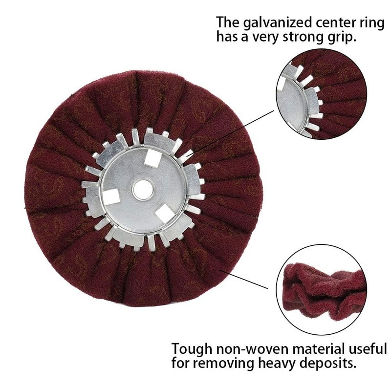 - Good Design: Airway polishing wheels Design Allows to buff longer and cooler than standard buffs.Tough non-woven material useful for removing heavy deposits and oxidation from all kinds of surfaces.