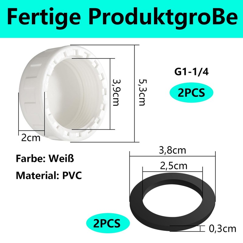 - 【Package Content】You will receive 2 pieces G1-1/4 PVC thread cap with internal thread as well as 2 matching rubber seals - ideal for securely sealing open pipe ends in kitchen, bathroom or garden.