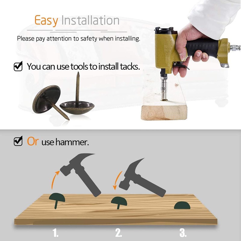 - Head Diameter: 16mm / 5/8"; Total Height: 20mm / 13/16"; Package includes:100Pcs Upholstery Tack Nail.