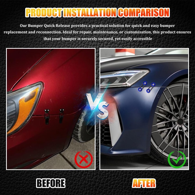 - [Easy to use] : These bumper holders for cars can be easily installed in place, just remove the bumper clip and O-ring, then lift the bumper to the appropriate position, and mark the hole position on it, and finally install the fastener, very convenient