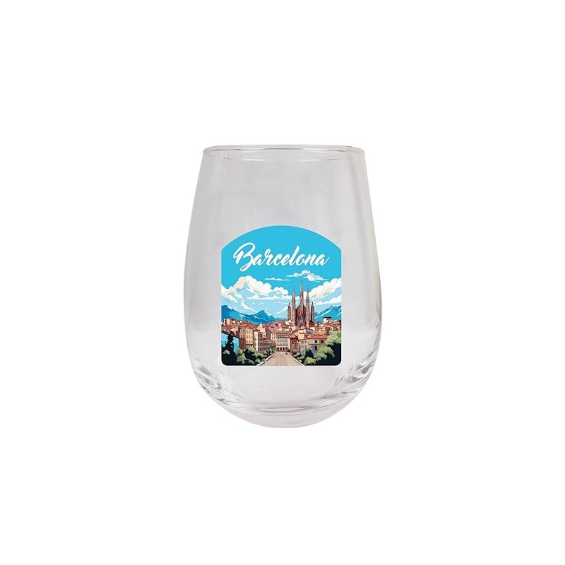 R and R Imports Barcelona Spain Design A Souvenir 15 oz Wine Glass Single