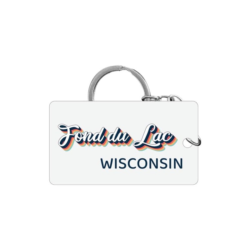 R and R Imports Fond du Lac Wisconsin Souvenir Acrylic Keychain 3D Retro Design 4-Pack