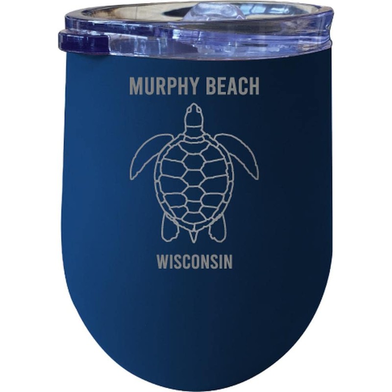 R and R Imports Murphy Beach Wisconsin Laser Etched Beach Souvenir 12 oz Insulated Wine Stainless Steel Tumbler Turtle Design Navy