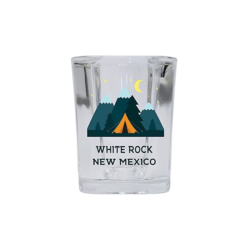 R and R Imports White Rock New Mexico 2 Ounce Square Base Liquor Shot Glass Tent Design