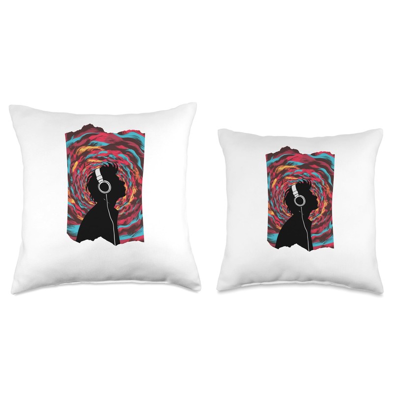R&B Magic Playlist Psychedelic Music Lover Headphones Art Throw Pillow